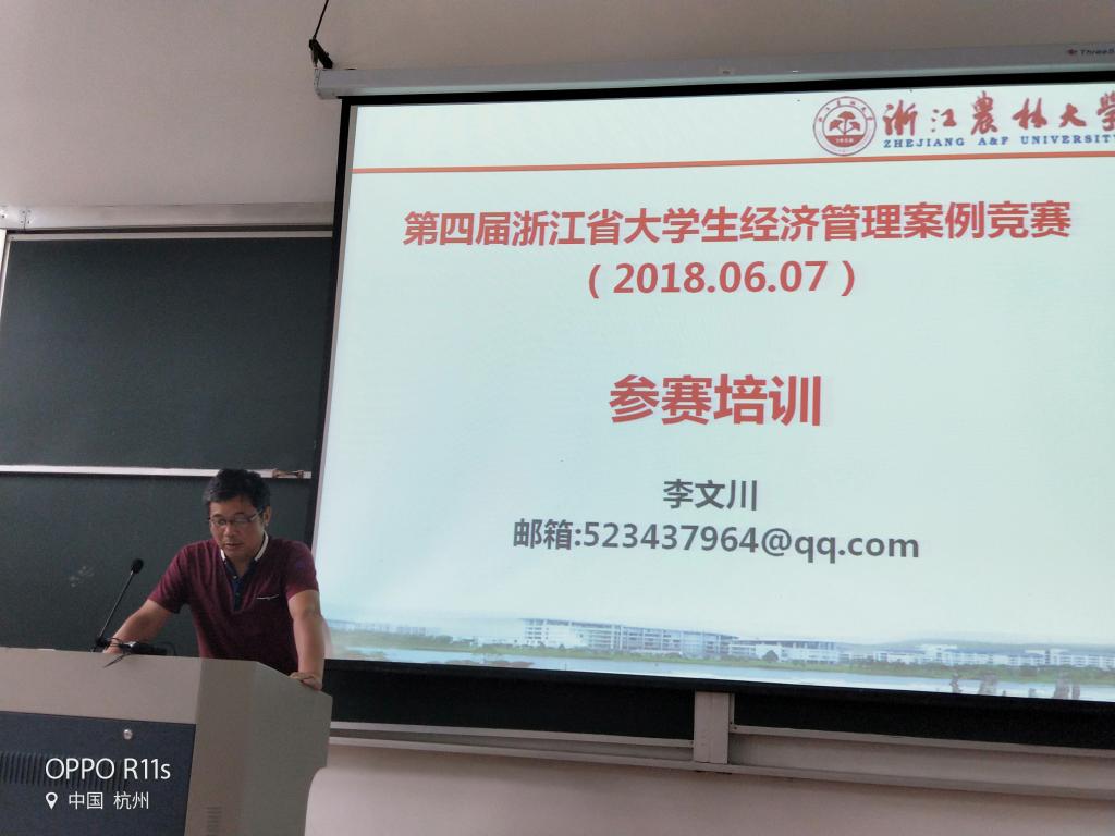 6月7日下午,第四届浙江省大学生经济管理案例竞赛校内宣讲会暨培训会在衣锦校区教学楼216举行,近百名拟参赛学生和部分指导老师参加,培训会旨在给拟参赛同学就比赛选题、实地调研、文本撰写及现场答辩等方面给予一定的指导和培训。
