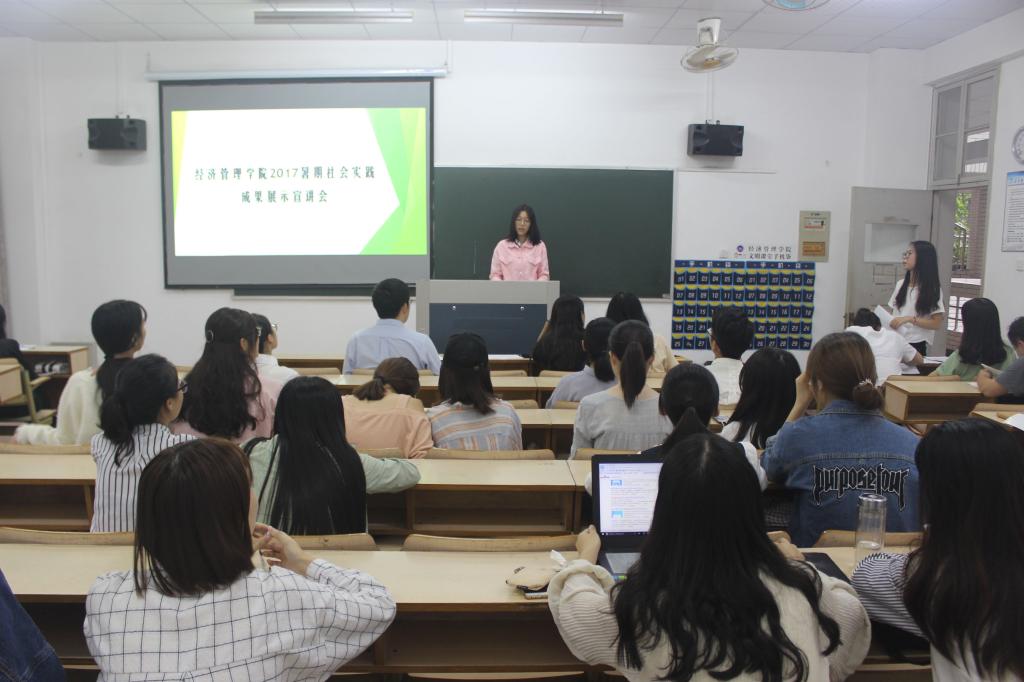 9月21日下午,为展示暑期社会实践成果,引导学生践行社会主义核心价值观,bet28365 365在衣锦教104开展2017暑期社会实践成果展示会。