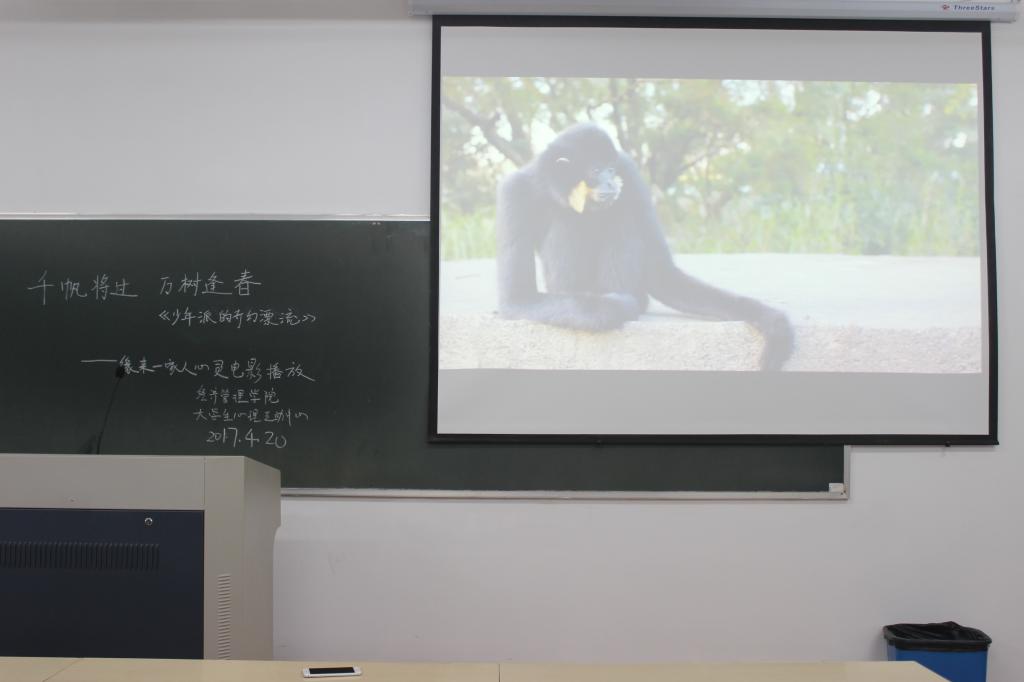 这次放映的电影是《少年派的奇幻漂流》,影片中描述了派独自一人和一只老虎漂泊在大海上,凭借着对生命的虔诚以及对生的执着信念,最终安全抵岸的经历。惊心动魄的场景,真切可触的感情,触动同学的心灵。派的勇气和乐观鼓励同学们面对挫折时要勇敢前行,不畏艰险。
